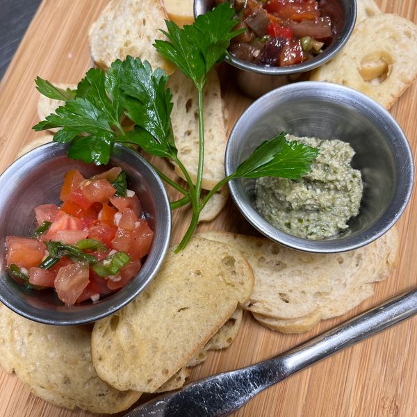 Tomato, Basil, Onion / Caramelized Onion & Goat Cheese Bruschetta